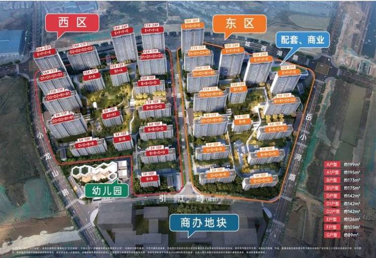 引江佳园规划拟建34栋住宅,户型面积段在89-199平米不等,包括大高层、小高层和洋房等不同类型。主力面积为105至125平米的大高层,143平米的小高层,以及175平米的洋房,还有少量199/201平米的房源。虽然89平米的小户型房源较少,但整体户型面积段丰富多样,能够满足不同居住需求,为购房者提供更多选择。