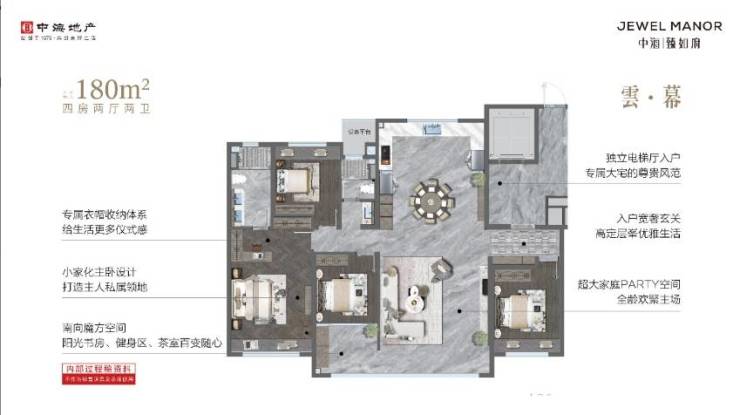 中海臻如府规划精巧,包括16栋住宅楼,涵盖3栋高层与13栋小高层,总计794套房源。在户型设计上,中海臻如府推出了143-220㎡的臻装大平层,能够满足高品质家庭的需求。