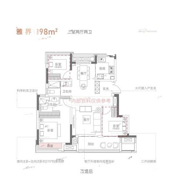 这个户型适合三口之家或二胎家庭。无明显硬伤,功能布局合理,满足日常生活需求。房产商徽创在肥东县布局的第四个高品质住宅区徽创金悦江南郡,景观设计独具特色,结合传统建筑理念和流行元素,是代表性的楼盘建筑,具有很高的购买吸引力。