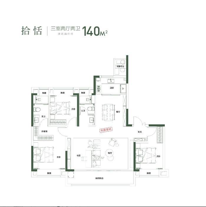 东侧次卧朝南,面宽 3.3 米,可作为老人房,预留智能监控、智能呼叫系统与智能温控接口,方便老人起居与紧急求助;西侧次卧朝南,面宽 3.1 米,可作为儿童房,预留智能监控、智能学习机与智能照明接口,满足孩子成长需求;北侧次卧面宽 2.9 米,可改造为智能书房、琴房或客房,预留智能办公设备、智能音响与智能照明接口,灵活性极高。厨房采用 U 型设计,操作台面长 3.5 米,洗切炒动线合理,预留智能家电接口,可安装智能冰箱、智能洗碗机、智能烤箱等全套智能厨房设备,打造 “智能厨房”,提升烹饪效率与体验;厨房与餐厅相邻,用餐便捷;餐厅空间开阔,可容纳 8 人餐桌,预留智能餐桌与智能餐边柜接口,满足大家庭聚餐需求。双卫生间均采用干湿分离设计,公共卫生间配备智能马桶、智能照明、智能换气与智能感应水龙头,使用便捷,避免早晚使用高峰拥挤。该户型空间奢阔,智能化配置齐全,能够满足多人口家庭的长期居住需求,是改善家庭的终极之选,享受高品质智能生活。