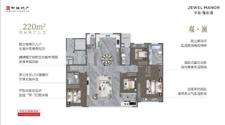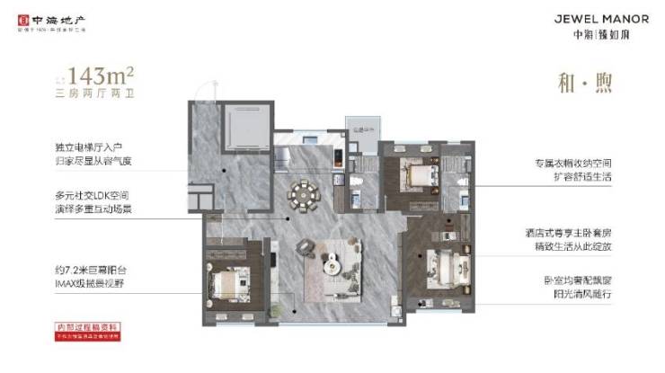中海臻如府的户型设计考虑了家庭的实际需求,特别是143m²和220m²户型。143m²户型拥有独立电梯厅入户,三房两厅两卫布局合理,7.2米宽景阳台打造宽敞公区,为家庭提供了舒适的居住空间。而220m²户型更是亮点多多,独立电梯入户、中西厨结合、客餐厅一体、多功能区随心改造,为家庭生活带来了更多便利和舒适。