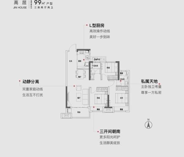 保利锦上项目规划有3栋21-26层的高层和4栋11层的小高层,户型面积99-128平,适合城市刚需客群。