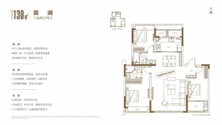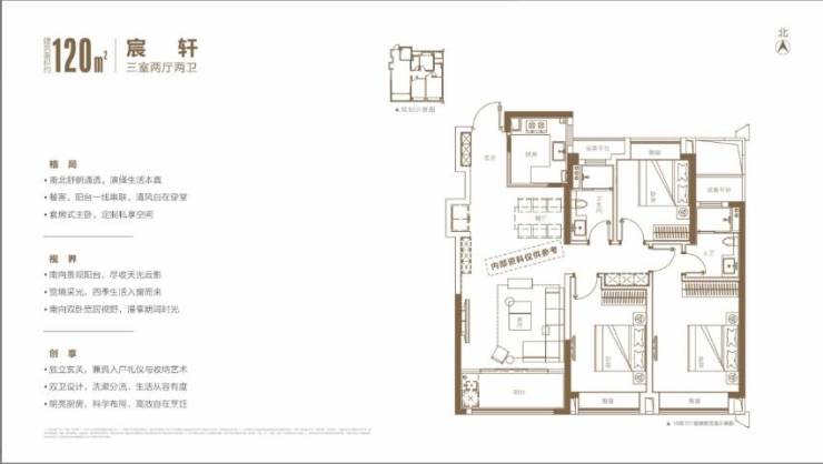 建筑面积约 120㎡的三室两厅两卫户型,定位为改善型户型,空间更加开阔,舒适度更高,适合追求品质生活的自住客群,同时也具有一定的投资价值。
