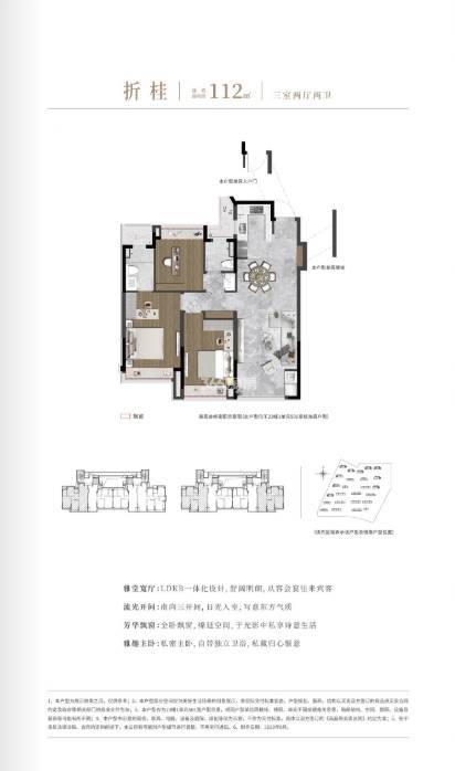 120㎡三室两厅两卫户型主打 “刚改通勤家庭”,适配三口之家或二胎家庭,在空间尺度与功能配置上全面升级,兼顾通勤便捷性与家庭居住舒适度。户型布局方正通透,南北通透设计让室内空气流通顺畅,全明户型保证每个房间都有充足采光,提升居住体验。