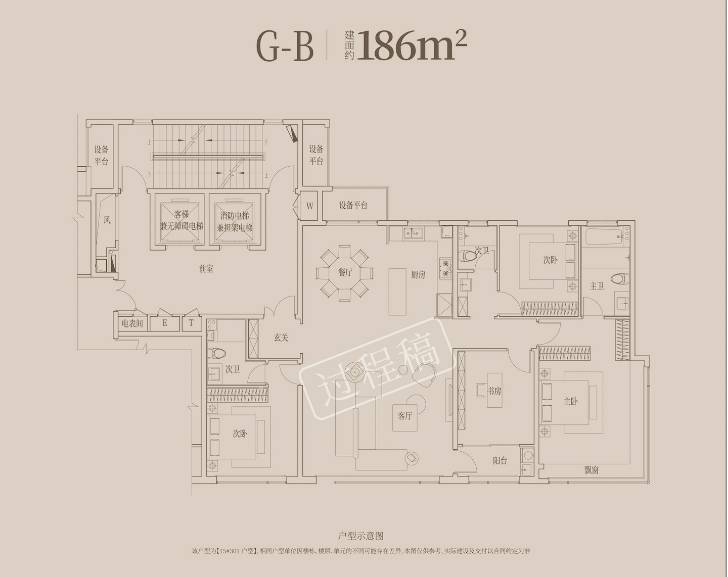 其次是建面约176平方米的小高层产品,采用了约3.9米的奢阔双主卧套房设计。主卧南北贯穿,给予主人最尊崇的空间尺度感。此外,南向四开间的设计保证了阳光充足,短进深、大开间的布局则让室内主要功能区享受到阳光的照射。
