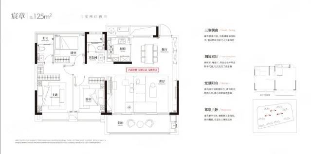 主卧采用套房设计,配备独立卫生间与步入式衣帽间,独立卫生间做到干湿分离,空间宽敞,使用方便;步入式衣帽间收纳空间充足,可分类存放衣物、鞋帽、箱包等物品,满足改善型家庭的收纳需求。南向次卧带有观景飘窗,可作为儿童房,紧邻主卧,方便家长照顾孩子;北向次卧可作为长辈房或书房,空间宽敞,居住舒适。厨房采用 L 型布局,操作空间充足,与餐厅相邻,动线合理;厨房配备整体橱柜与品牌厨房电器,同时预留小家电位置,方便使用。公共卫生间位于两个次卧之间,干湿分离,使用方便,避免家庭成员之间的使用冲突。该户型空间宽敞、功能完善,同时靠近商业配套,能够满足改善型消费家庭的居住与生活需求。